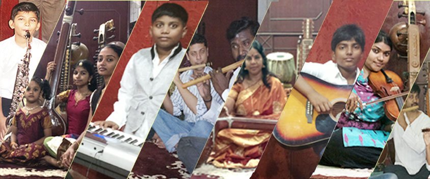 Instrumental music classes are taken in Carnatic, Hindustani, and Western styles. Advanced specialization courses in all instrumental are also taken for special areas like professional Flute, Keyboard, Violin, Veena, Guitar, Piano and Rudra Veena.